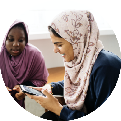 Muslim women looking at a phone
