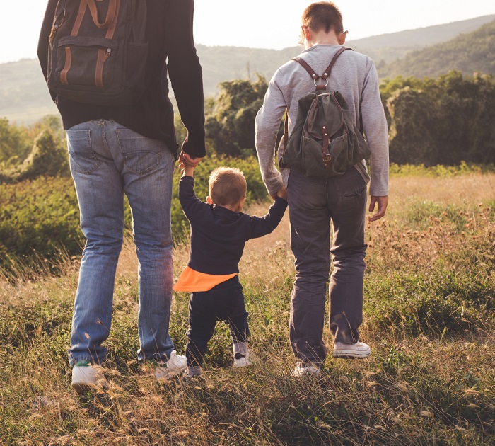 Family walking in field